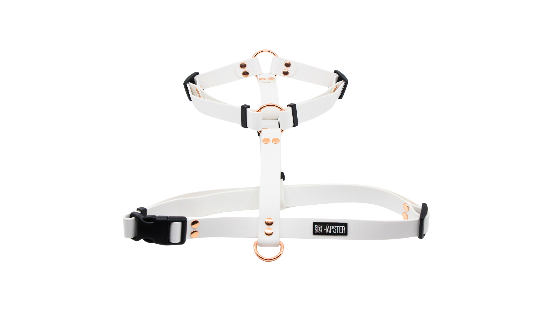 Traksid koosnevad kahest metallist O-rõngast, metallist D-rõngast, neljast mustast plastikust pingutist ning mustast plastikust klõpskinnitusest. Trakside klõpskinnitus ning rihma pingutid on standardina mustast plastikust, kuna metallist klõpskinnitus ning pingutid on raskemad ning võivad hakata trakse koera seljas külje peale kiskuma. Kui oled siiski kindel, et soovid ka rihma teisi kinnitusi (pingutid ning klõpskinnitus) metallist, siis on võimalik need tellimust esitades lisatasu eest lisada.